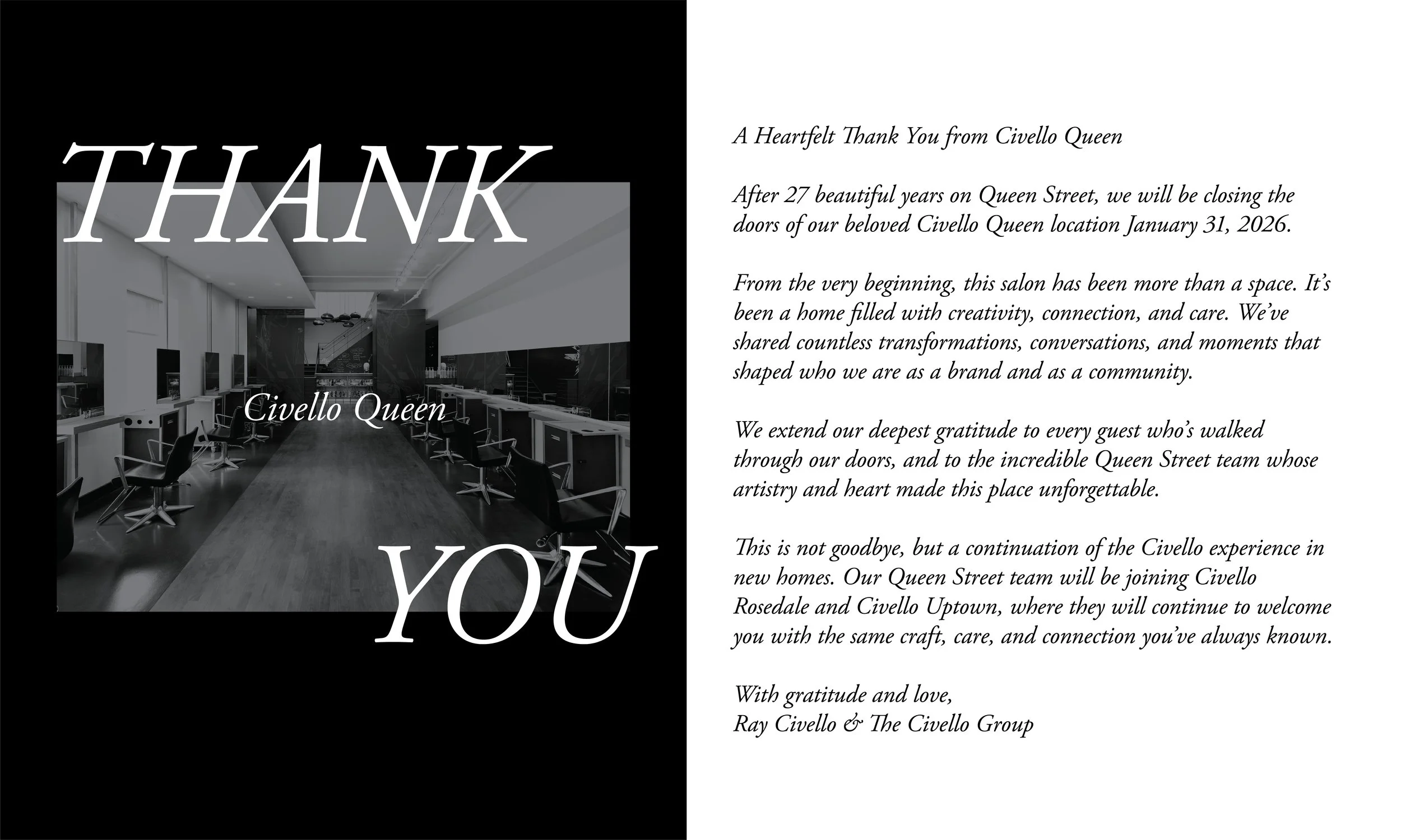 For over three decades, Civello Salon & Spa has been synonymous with excellence, earning our reputation as a top salon in Toronto, Oakville and Vancouver through mindful dedication to our craft. Our commitment to continuous learning, artistic creativity, and dedication to delivering exceptional service define our core values.